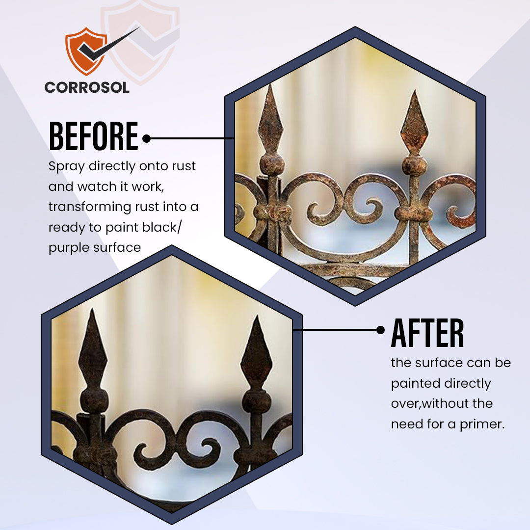- Rust Converter converts rust into a stable substance, magnetite. It also primes the surface with a high quality latex metal primer at the same time. Rust Converter truly provides one step corrosion control.